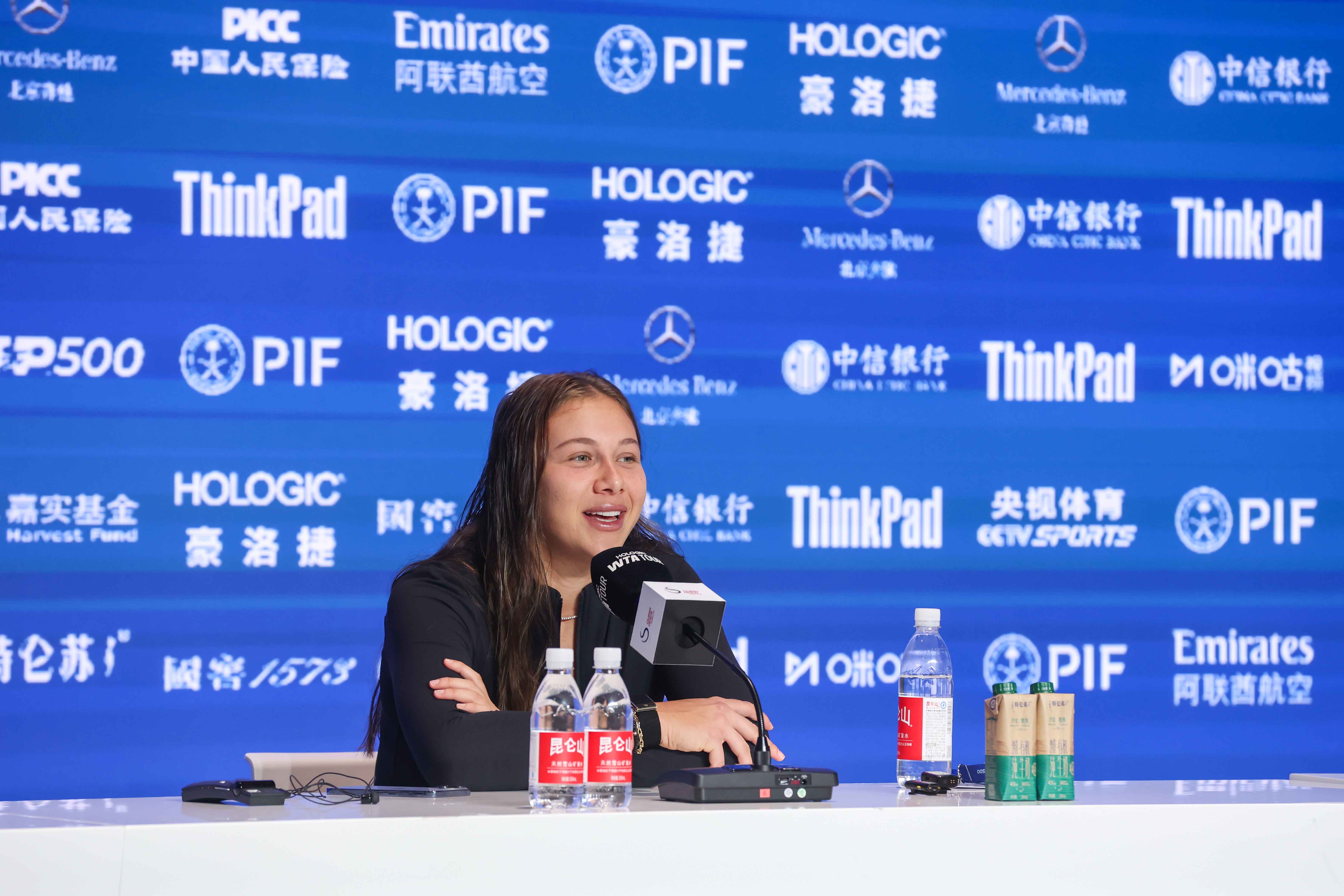 阿尼西莫娃在冠军发布会上说:“这两周感觉非常棒,很兴奋、很开心拿到奖杯,非常的特别。很期待明年再回到中网,这里有非常特别的回忆。”从连续两个大满贯遗憾屈居亚军,到中网击败一众名将成功登顶,阿尼西莫娃也有很多感触,”这几周真的是起起伏伏,我从中学习到了很多,有非常多的收获。我进步了,知道该如何去应对挑战,在极限时候怎么去让自己再进一步。有的时候自己会比想象当中更加坚强,最重要的是能够进入到决赛拿到奖杯。”