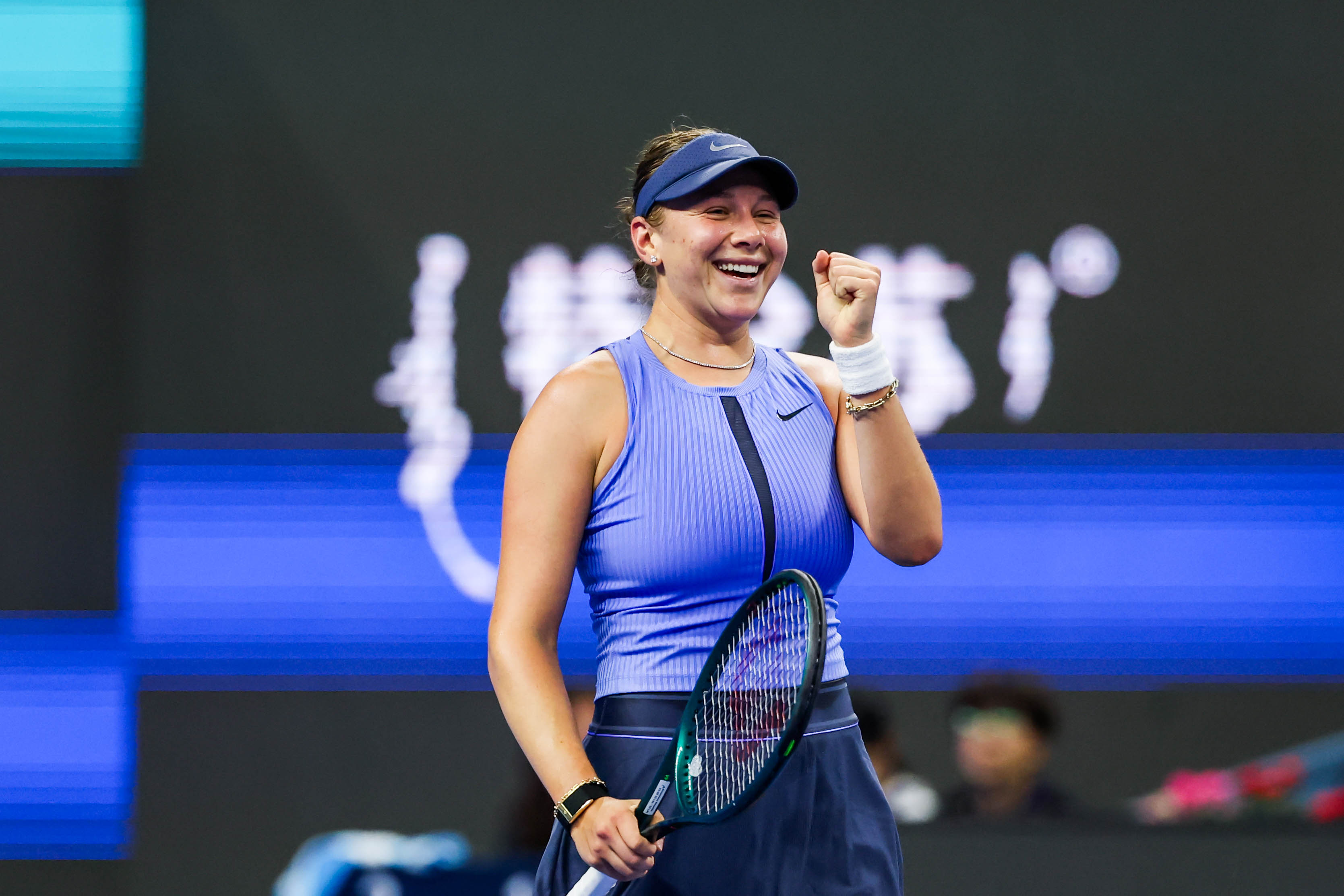 赢下这场艰苦的比赛后,阿尼西莫娃相当兴奋,“我很喜欢在北京打球,非常期待和高芙的对决!”她还用中文对现场球迷说了“谢谢”。继高芙闯入八强锁定总决赛席位之后,今晚阿尼西莫娃在闯进四强后,也成功锁定了总决赛席位,这将是她的首次总决赛之旅。这样一来,有两位选手通过本届中网拿到了总决赛席位。
